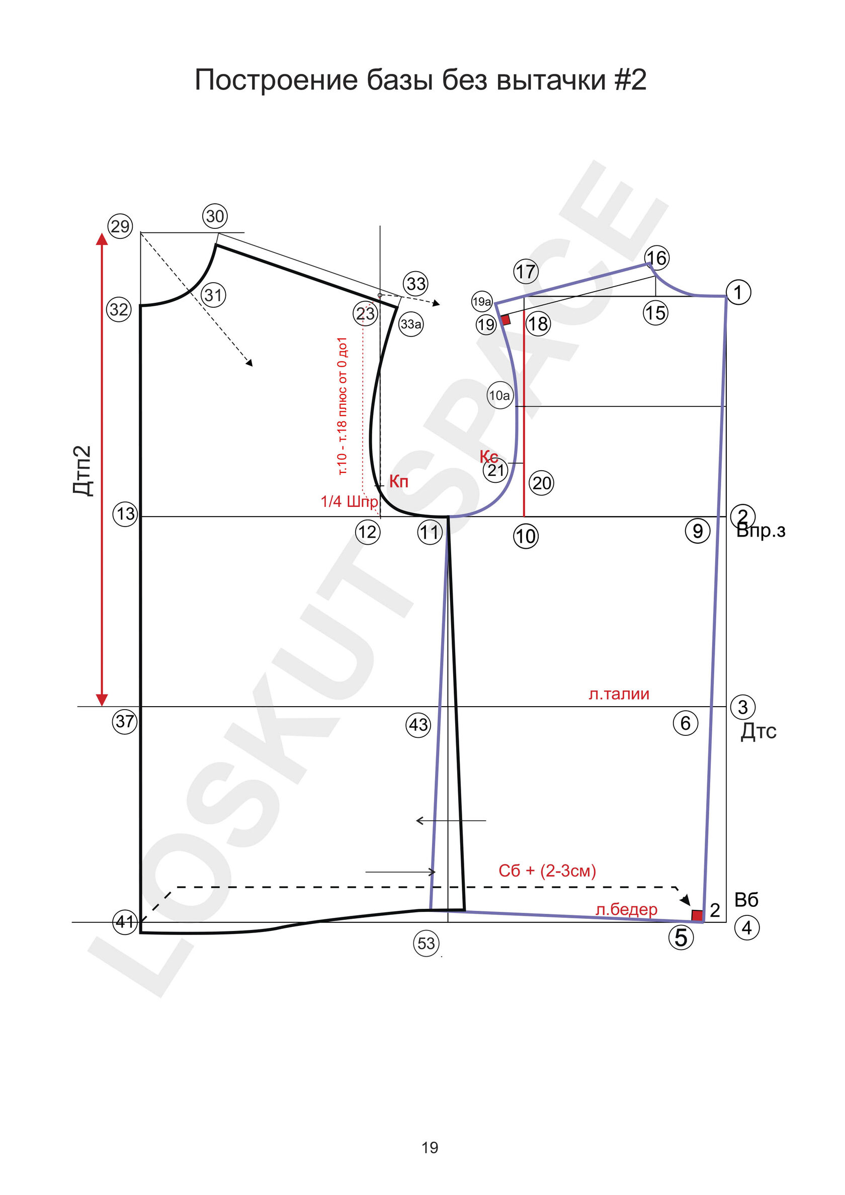 Строим базовую основу без вытачек (свободную, не прилегающую) не подходит для облегающих изделий